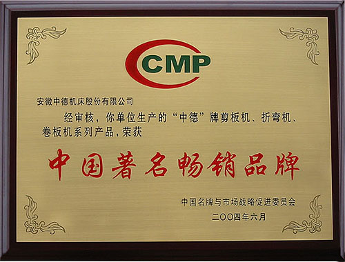 我公司生產(chǎn)的“中德”牌剪板機(jī)、折彎?rùn)C(jī)、卷板機(jī)等產(chǎn)品由于質(zhì)量穩(wěn)定、市場(chǎng)美譽(yù)度高在本次活動(dòng)中一舉當(dāng)選。(證書(shū)編號(hào):2004MP398)