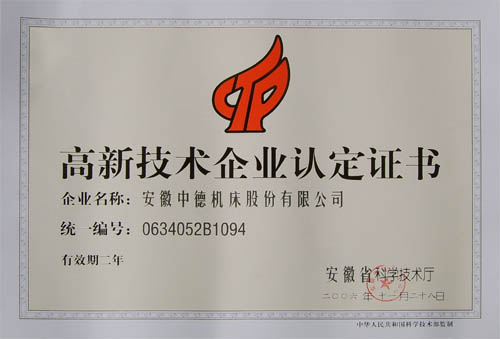 根據(jù)《國(guó)家高新技術(shù)產(chǎn)業(yè)開(kāi)發(fā)區(qū)高新技術(shù)企業(yè)認(rèn)定條件和辦法》、《國(guó)家高新技術(shù)產(chǎn)業(yè)開(kāi)發(fā)區(qū)外高新技術(shù)企業(yè)認(rèn)定條件和辦法》及我省實(shí)施細(xì)則規(guī)定的條件,我公司等39家單位經(jīng)省科技廳或各市科技局、高新區(qū)組織的高新技術(shù)企業(yè)認(rèn)定專(zhuān)家評(píng)審會(huì)通過(guò),經(jīng)公示無(wú)異議,省科技廳審批認(rèn)定為“高新技術(shù)企業(yè)”(證書(shū)編號(hào):0634052B1094)。同期,我公司研制開(kāi)發(fā)的“WE67K電液同步數(shù)控折彎?rùn)C(jī)”,被省科技廳審批認(rèn)定為“高新技術(shù)產(chǎn)”(證書(shū)編號(hào):3405004867),自批準(zhǔn)之日起享受?chē)?guó)家和省對(duì)高新技術(shù)企業(yè)(產(chǎn)品)給予的優(yōu)惠政策。