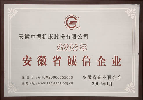 近日我公司被安徽省企業(yè)聯(lián)合會評為2006年“安徽省誠信企業(yè)”。