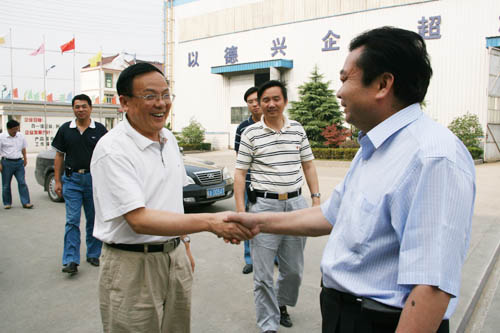 在鄭長玉董事長的陪同下,吳副書記等一行參觀了生產車間和成品車間并在公司會議室進行了座談。在了解了我公司的發(fā)展歷程、生產銷售、人才培養(yǎng)等情況后,吳副書記等人對公司近年來所取得的經營成績給予充分肯定。他指出,工業(yè)是民族經濟的支柱,尤其是機械設備工業(yè)是基礎中的基礎。在競爭日趨激烈的市場環(huán)境下,企業(yè)競爭力的提升關鍵要是靠人才的培養(yǎng),關鍵是要靠科技創(chuàng)新能力的提升和不斷完善的服務體系。同時吳副書記還指出,企業(yè)要發(fā)展必須實施“走出去”戰(zhàn)略,參與國際經濟競爭與合作,努力開拓國際市場,提高國際市場占有率,在國際分工與合作中取得有利地位。