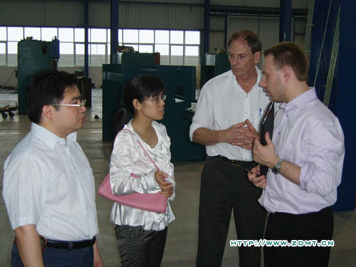 盡管天氣非常炎熱,下午還下起了暴雨,但這絲毫沒(méi)有影響他們參觀的熱情!稍作休息后,Peter和Daniel 就迫不及待的隨同公司領(lǐng)導(dǎo)及工作人員來(lái)到了我們的大型裝配車間,在這里,他們審視的眼光掃過(guò)每一臺(tái)機(jī)器,然后都滿意的點(diǎn)點(diǎn)頭。期間不斷的向隨行的工作人員提問(wèn),非常的認(rèn)真,我們的工作人員都耐心的一一解答。